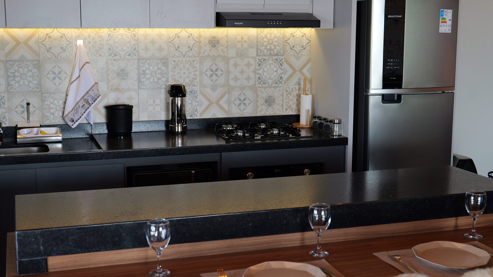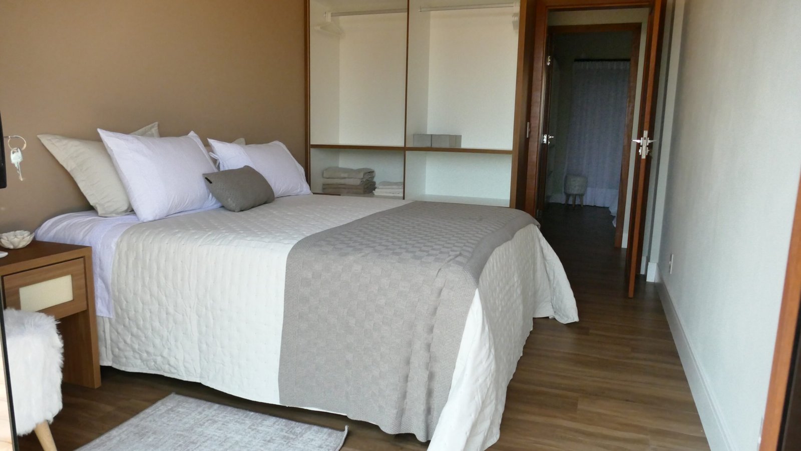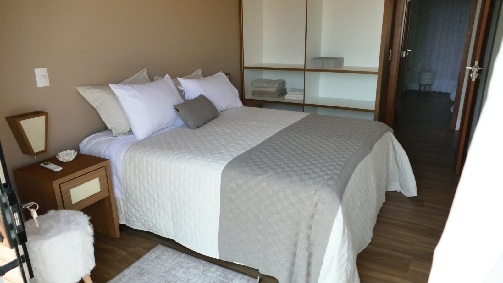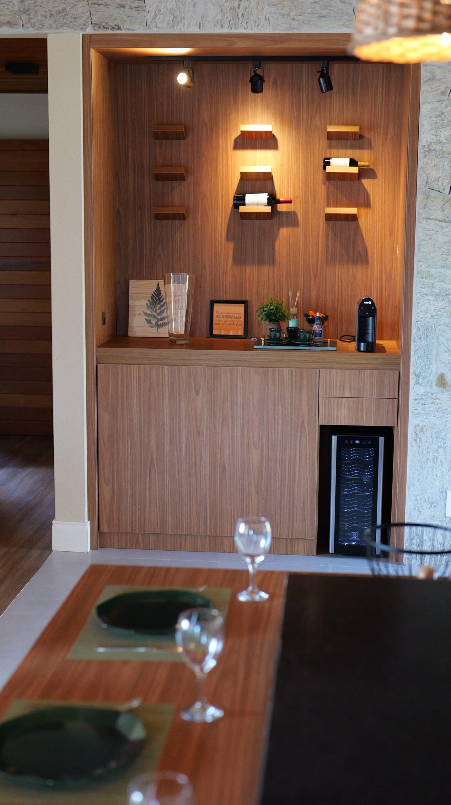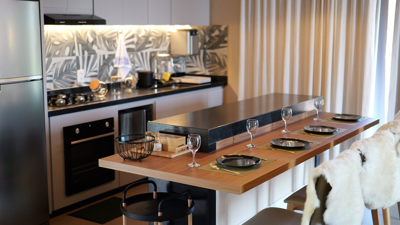Sala de estar integrada com cozinha montada 2 quartos de casal, sendo 1 suíte Banheiro social com alto padrão de acabamento Deck de madeira com 96 m² e banheira de hidromassagem Estacionamento para até 4 veículos Paisagismo com vista para a Pedra Azul