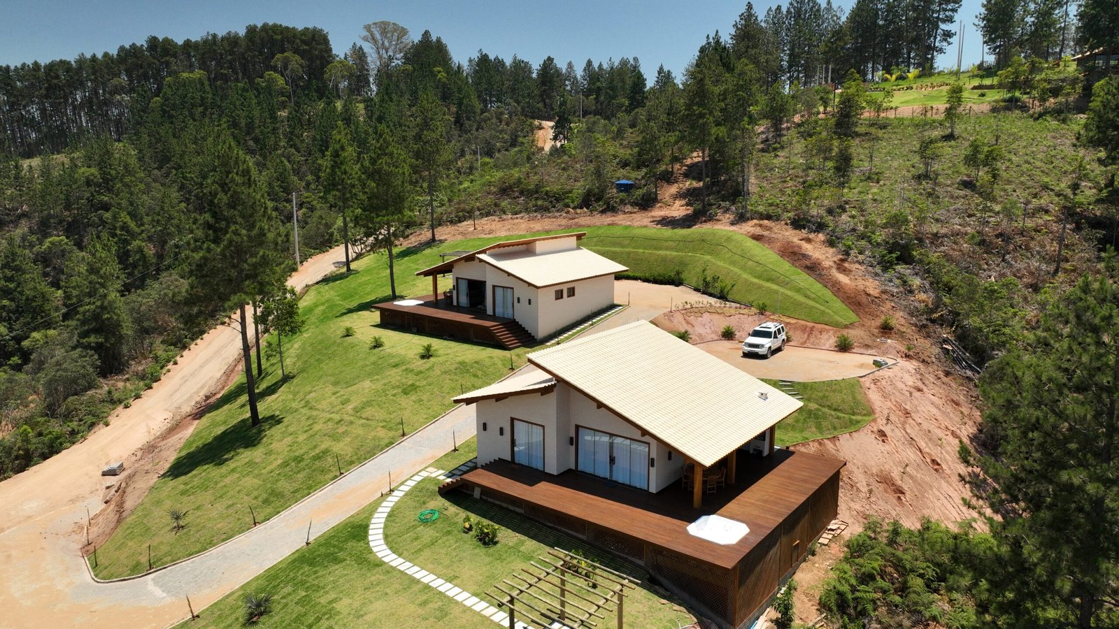 Os chalés Ipê Amarelo são um marco de sofisticação e design integrado à natureza. Localizados em uma propriedade de 30.000 m², eles combinam materiais nobres, como madeira, pedra e vidro, com um paisagismo impecável que valoriza cada detalhe do espaço.